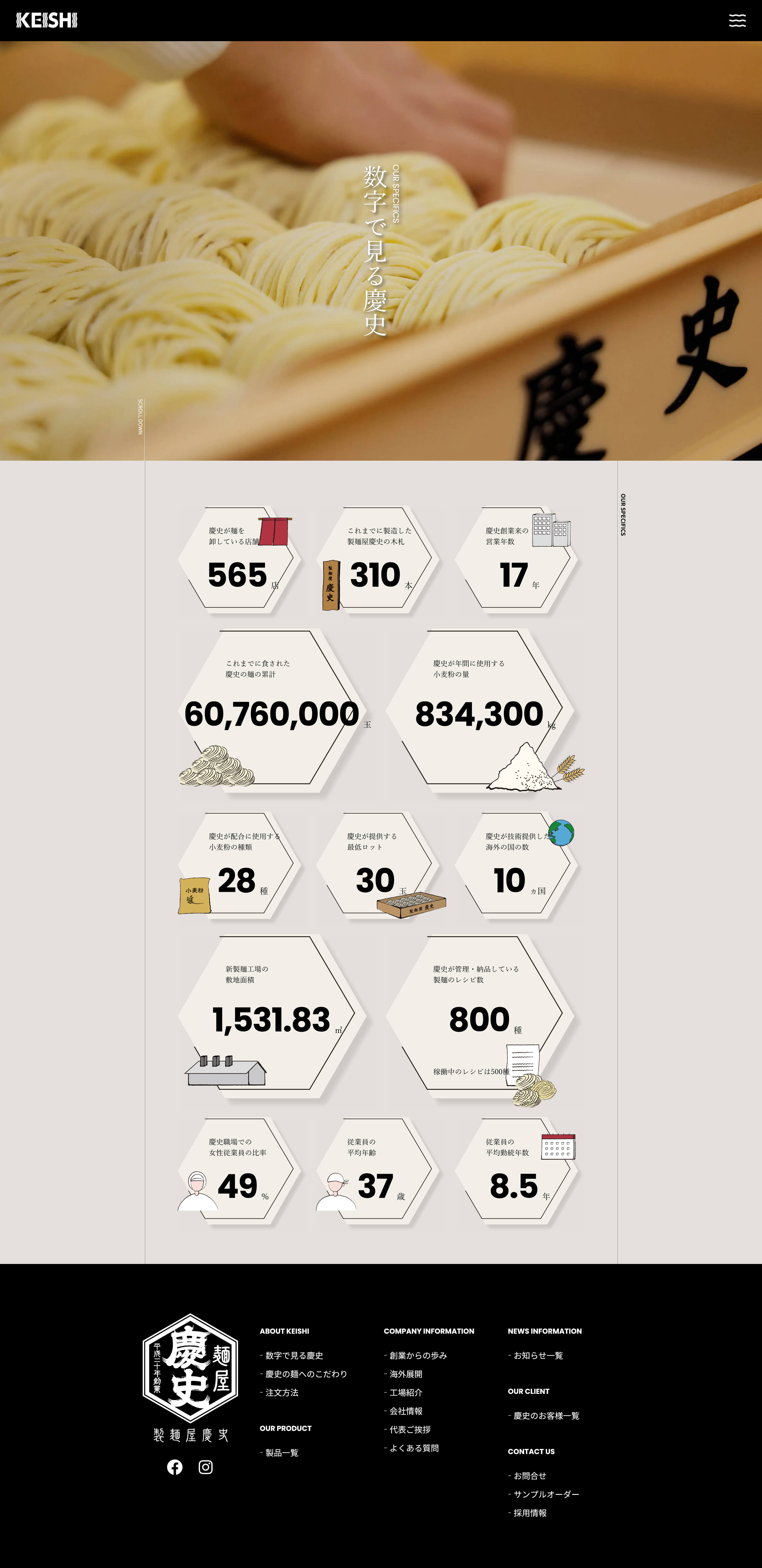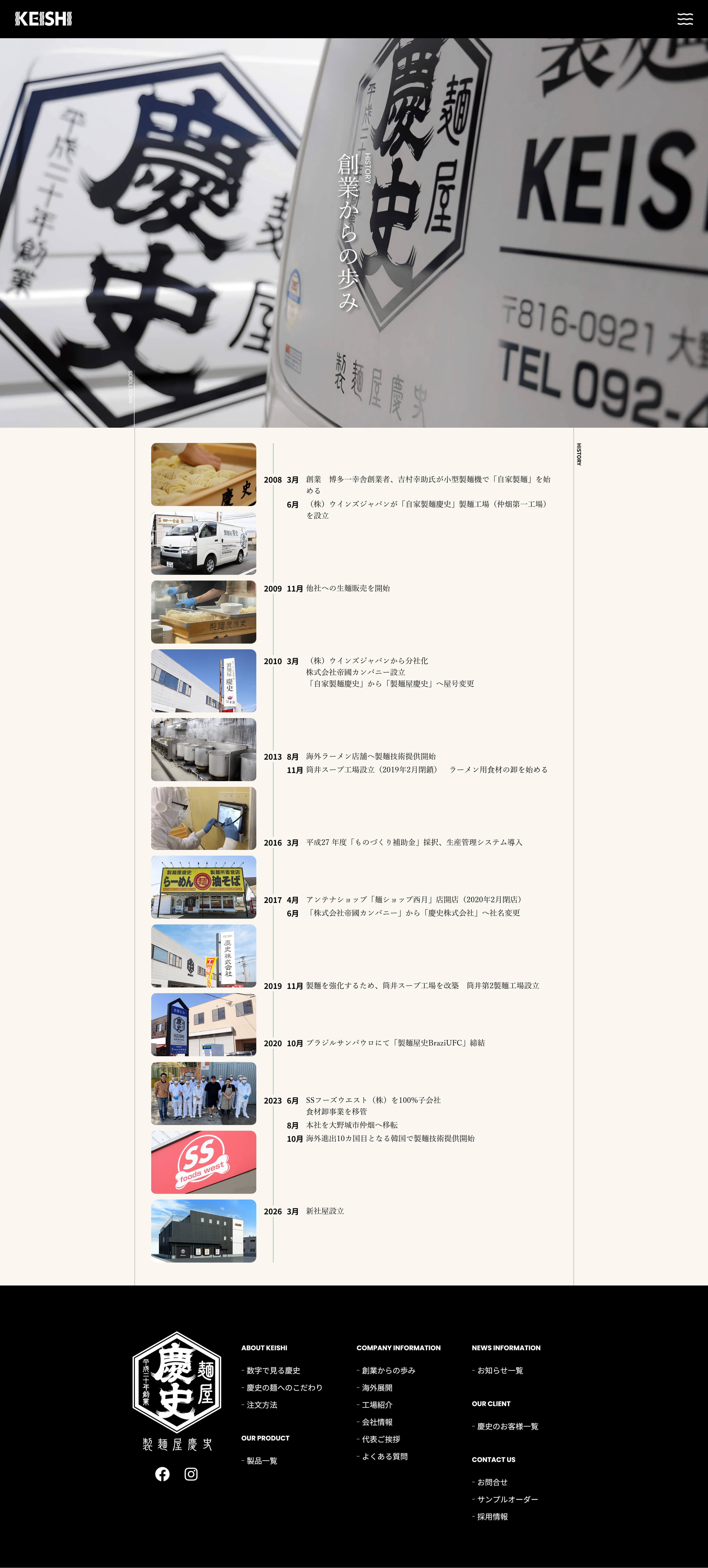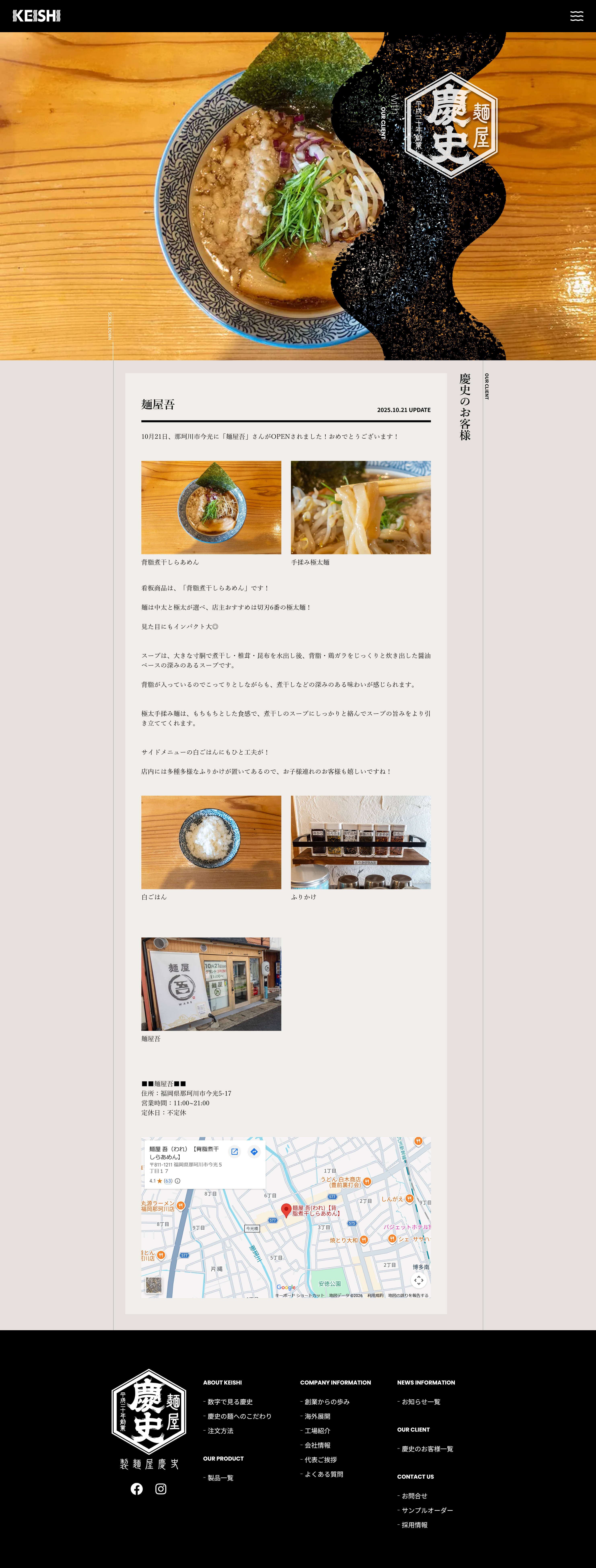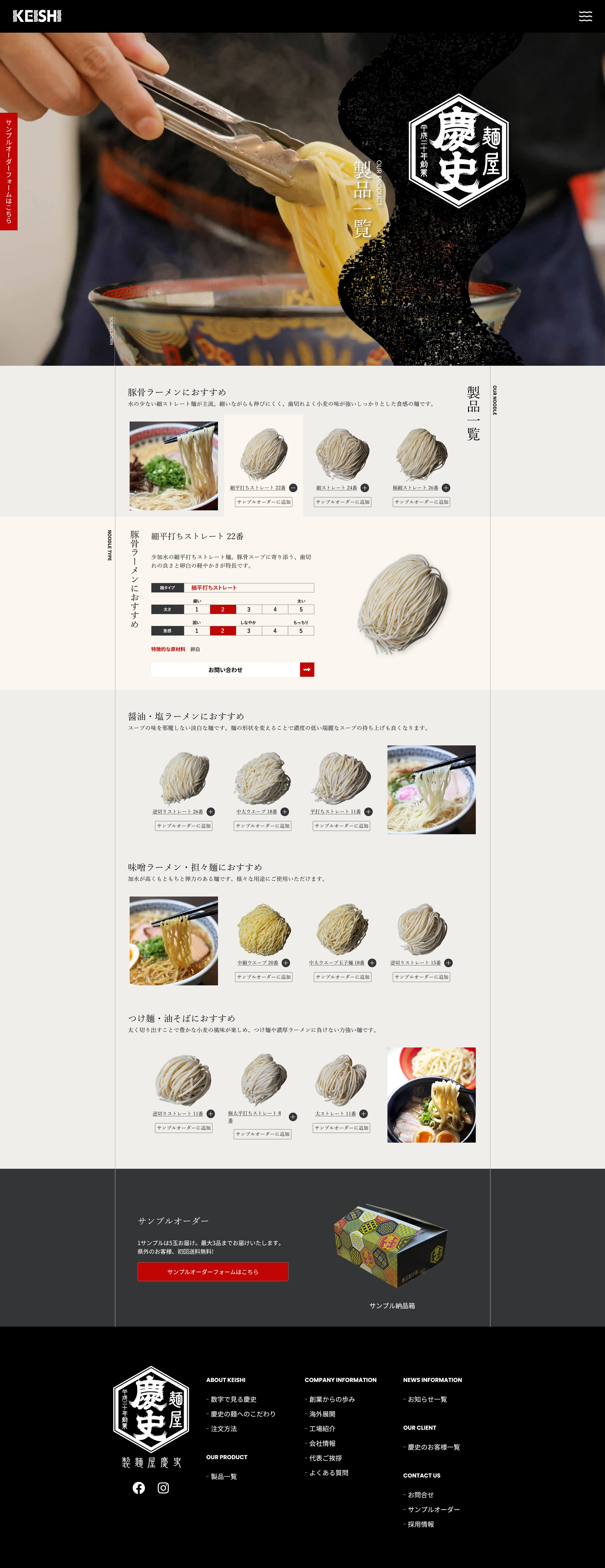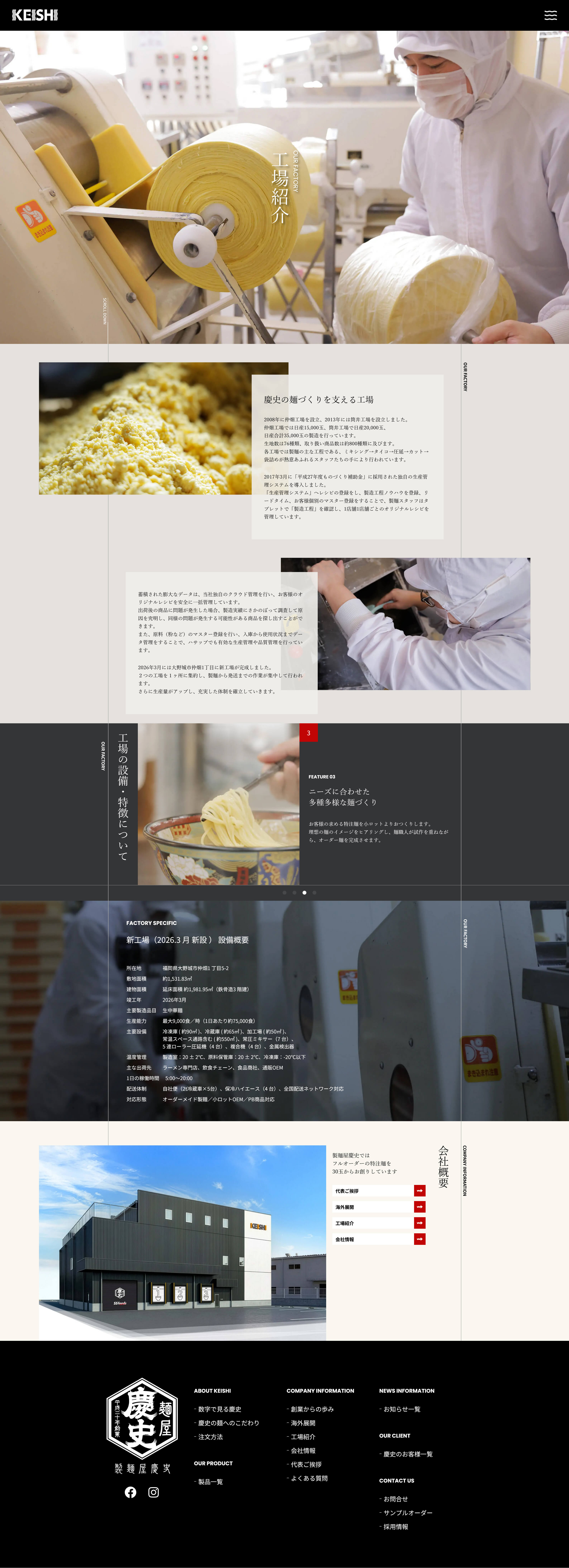 - 製麺会社 慶史様のコーポレートサイトになります。企画構成、設計・開発、システム構築および、編集・撮影からブランディングディレクションまで担当いたしました。