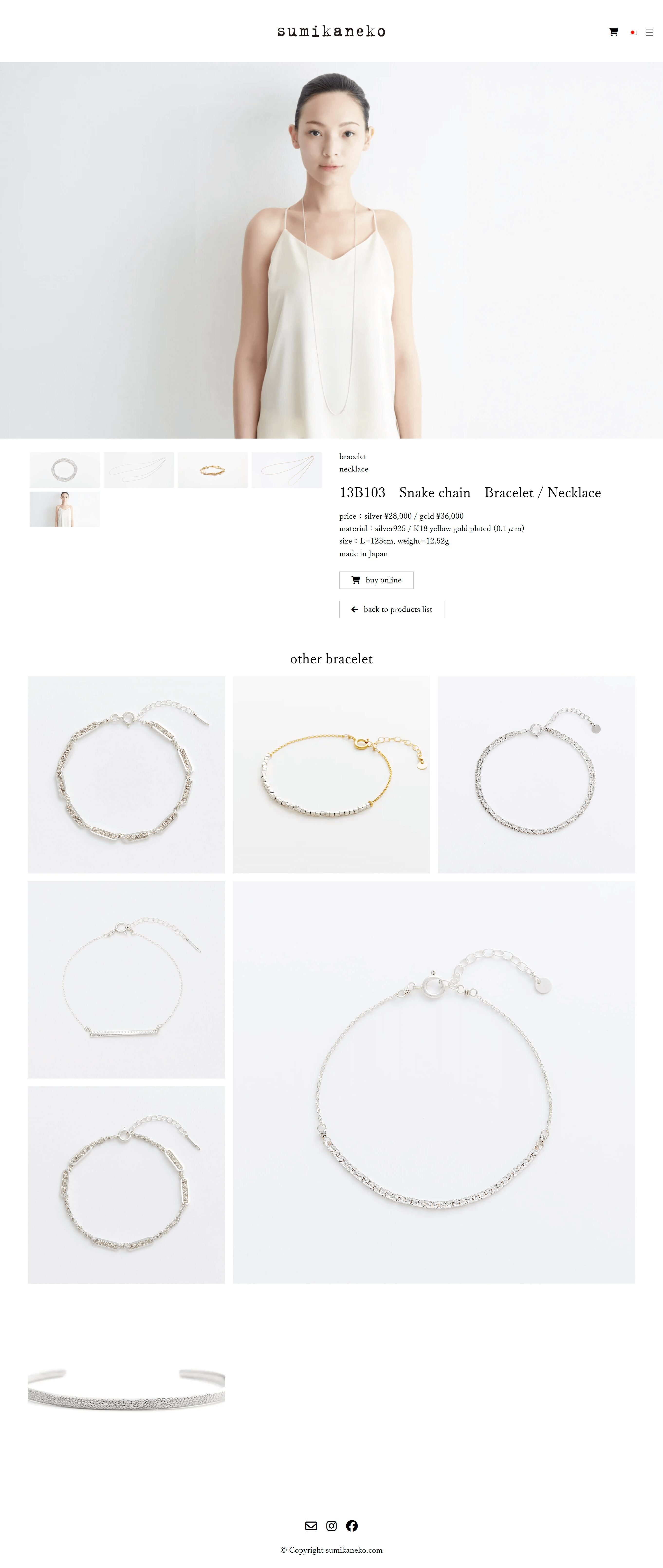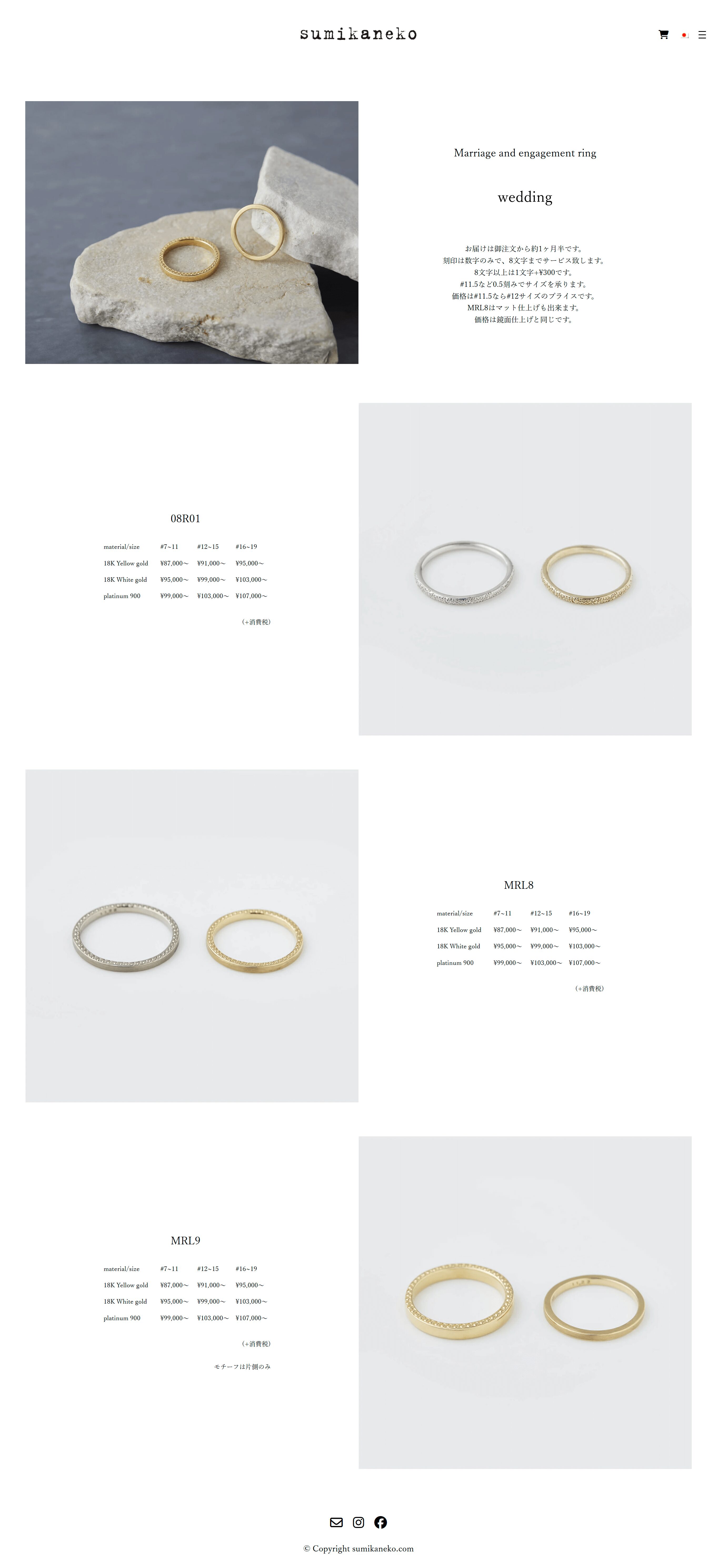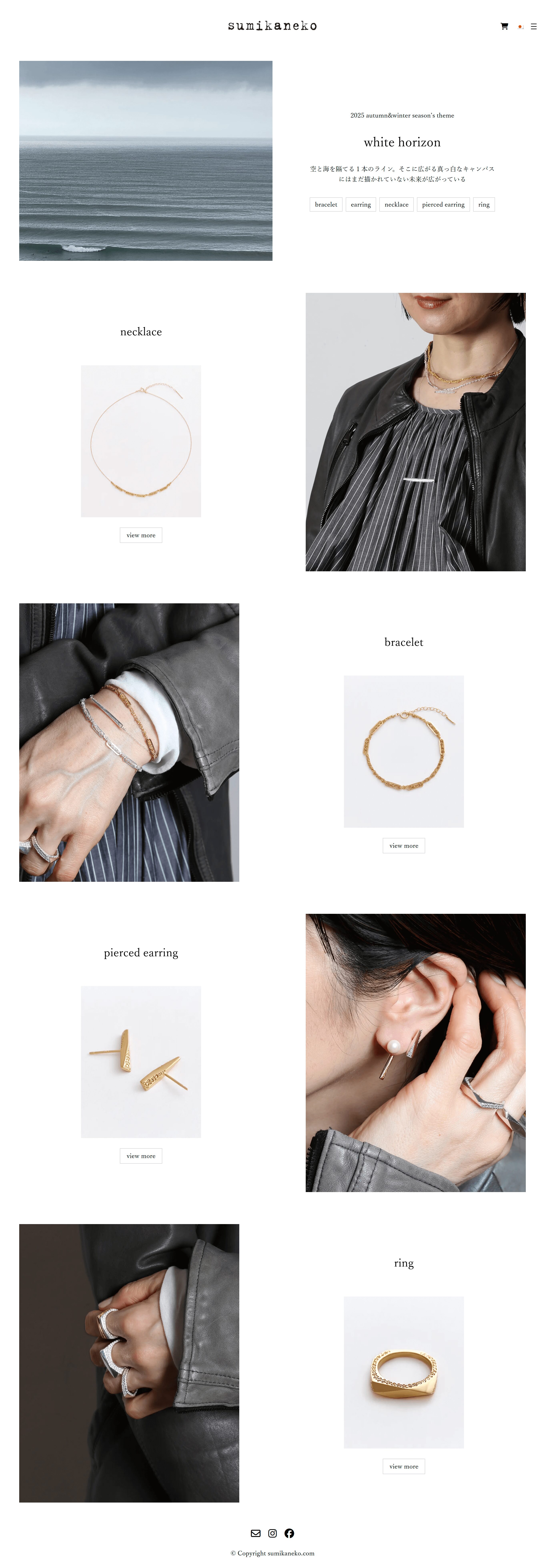 - ジュエリーアーティストsumikaneko様のブランドサイトになります。2017年来、2回目のリニューアルになります。