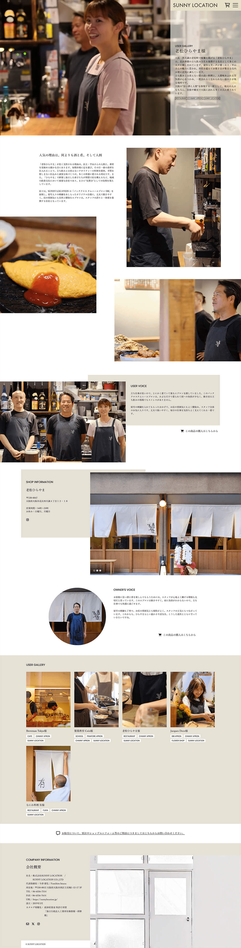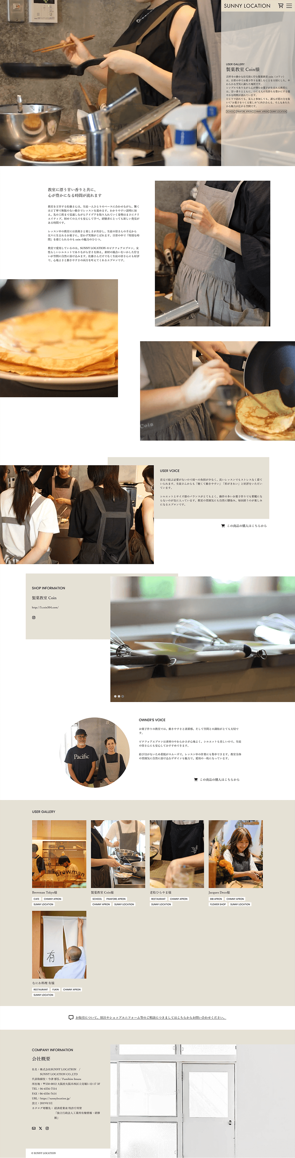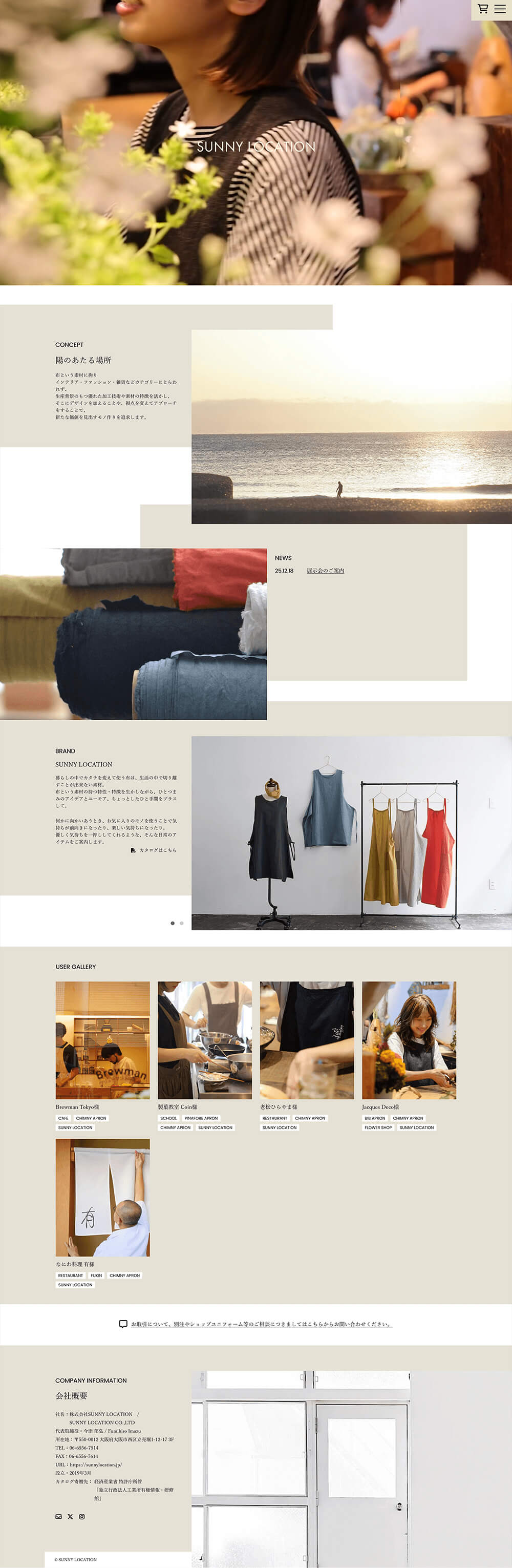 - エプロン製造とテキスタイルデザインのサニーロケーション様のコーポレートサイトになります。 2020年来、2度目のリニューアルになります。